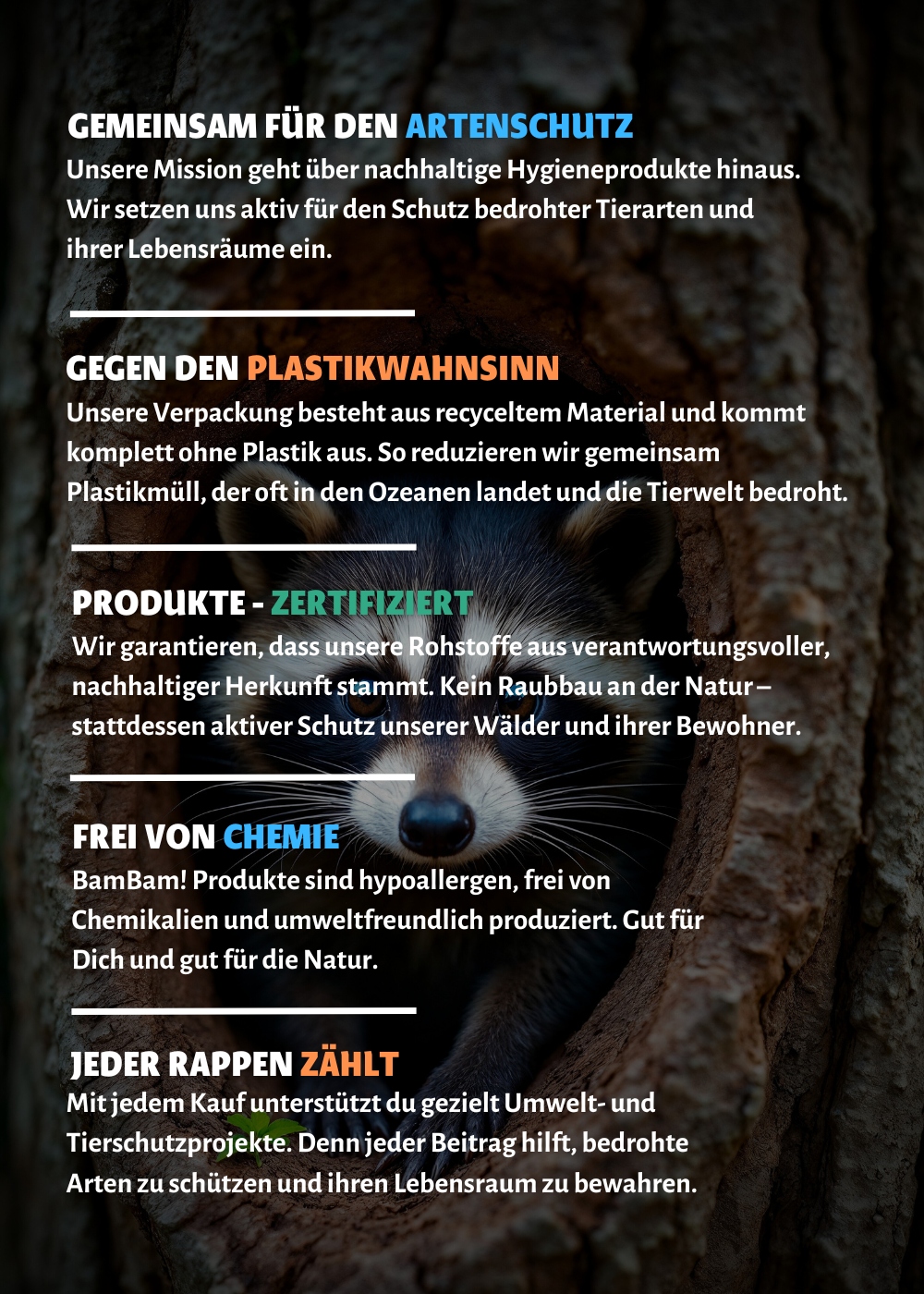 BamBam! verwendet ausschliesslich zertifizierten Bambus und schützt damit unsere Erde.