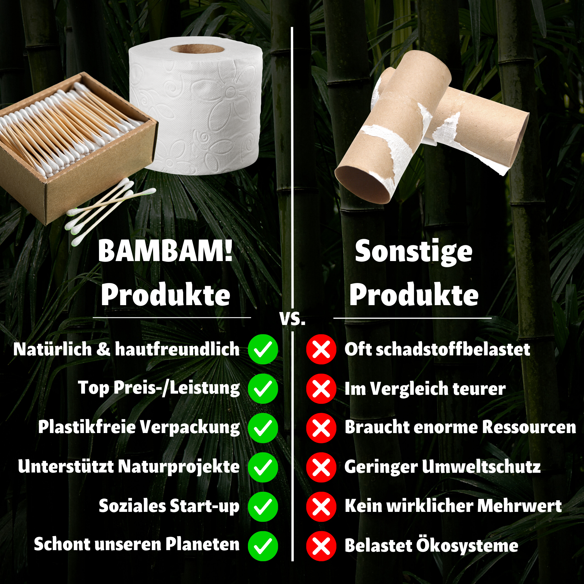Also, worauf wartest du? Bestellen, Naturschutz unterstützen und super nachhaltige BamBam! Produkte geniessen!