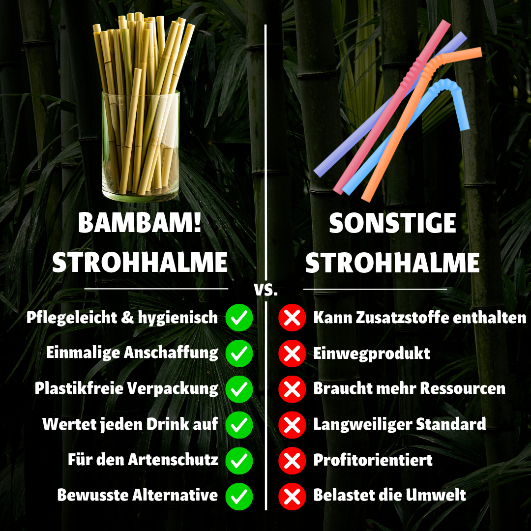 Mit unseren Bambus-Strohhalmen bringst du nicht nur mehr Nachhaltigkeit in deinen Alltag, sondern begeisterst auch deine Gäste mit einem stylischen Hingucker im Glas. Ob frischer Cocktail, Eistee oder Smoothie – mit diesen Naturhalmen wird jedes Getränk zum Highlight!