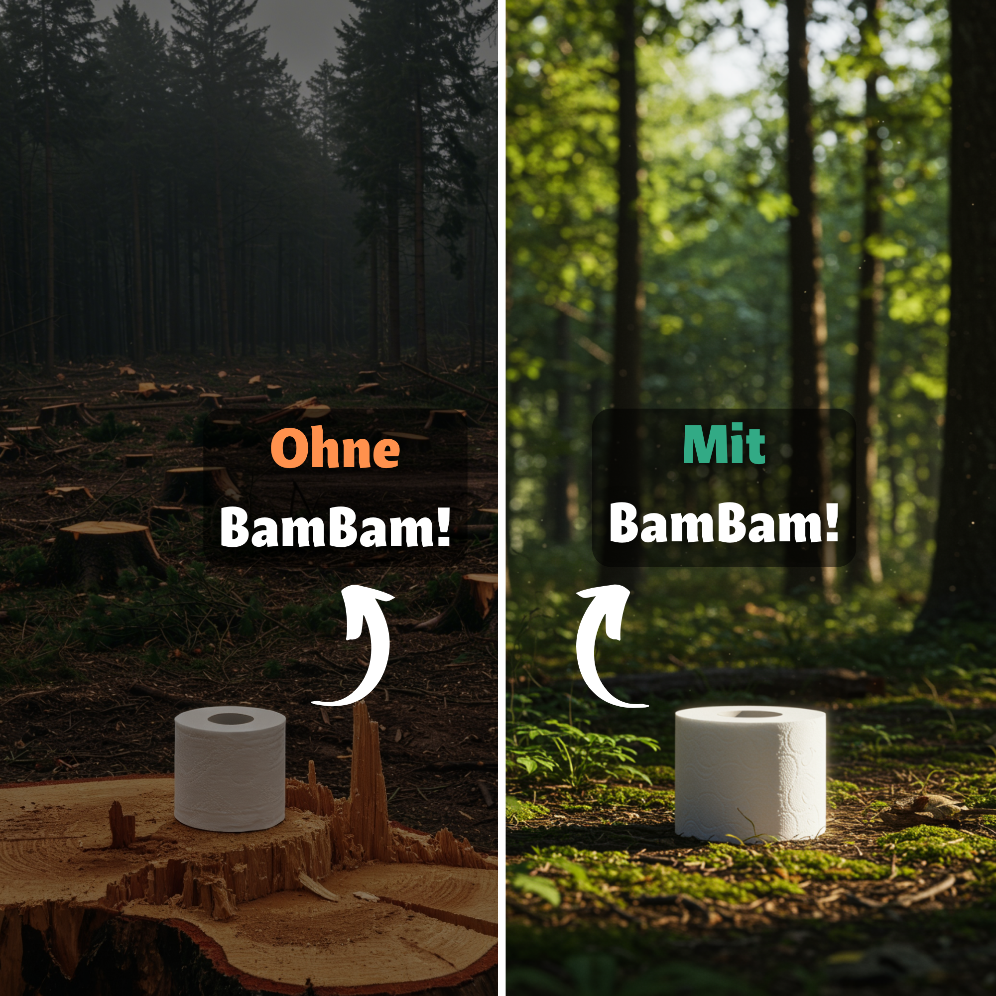 BamBam! besteht zu 100 % aus nachhaltigem Bambus – einer schnell wachsenden, ressourcenschonenden Pflanze, die mit minimalem Wasserverbrauch, ohne den Einsatz von Pestiziden und mit wenig Arbeitsaufwand gedeiht. Unsere Produktion setzt auf Nachhaltigkeit und unser Toilettenpapier wird in einer vollständig plastikfreien und recycelbaren Verpackung geliefert.