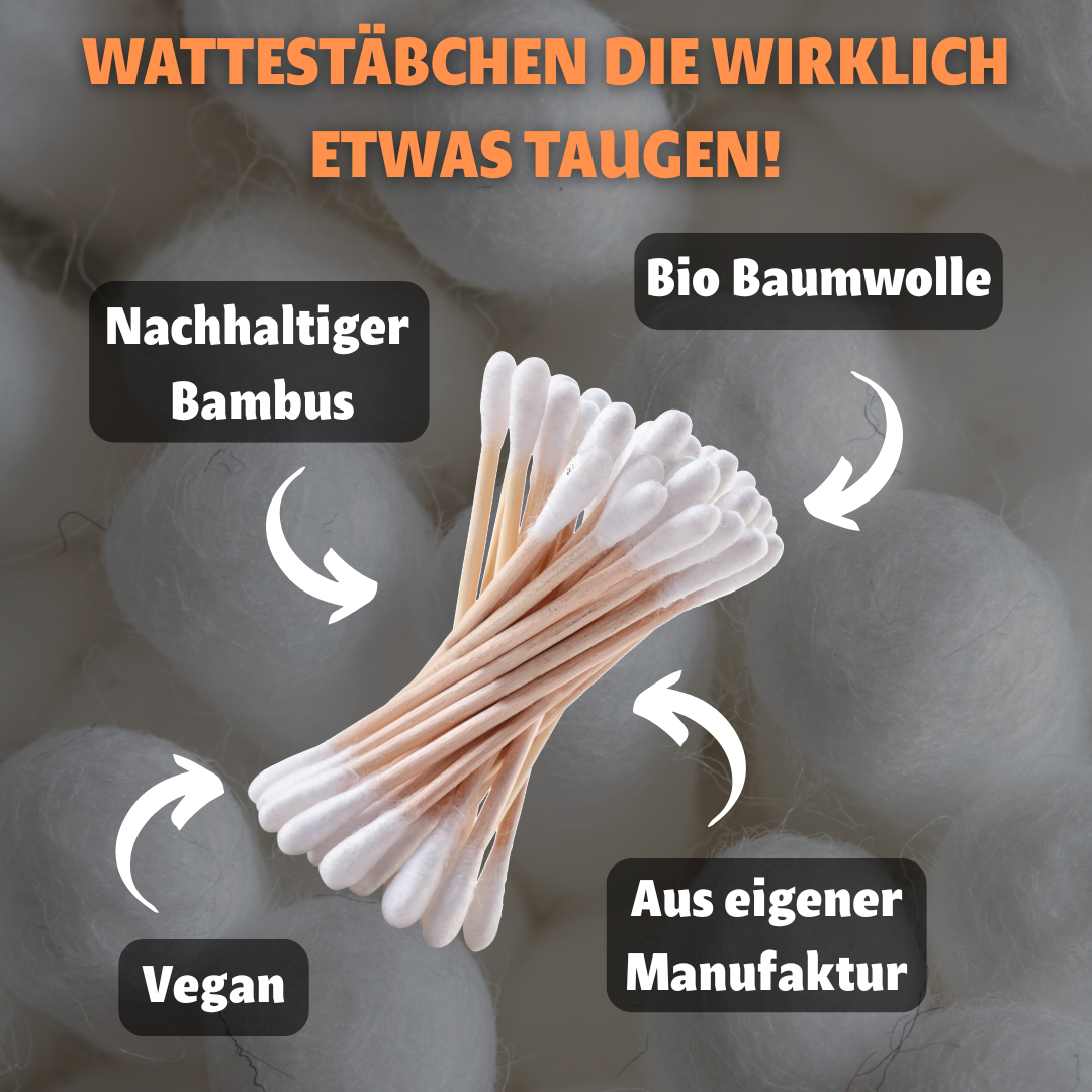 Mit jedem kleinen Umstieg verändert sich das grosse Ganze. Deshalb bestehen unsere Wattestäbchen aus natürlichen, biologisch abbaubaren Materialien wie nachhaltigem Bambus und zertifizierter Bio Baumwolle.