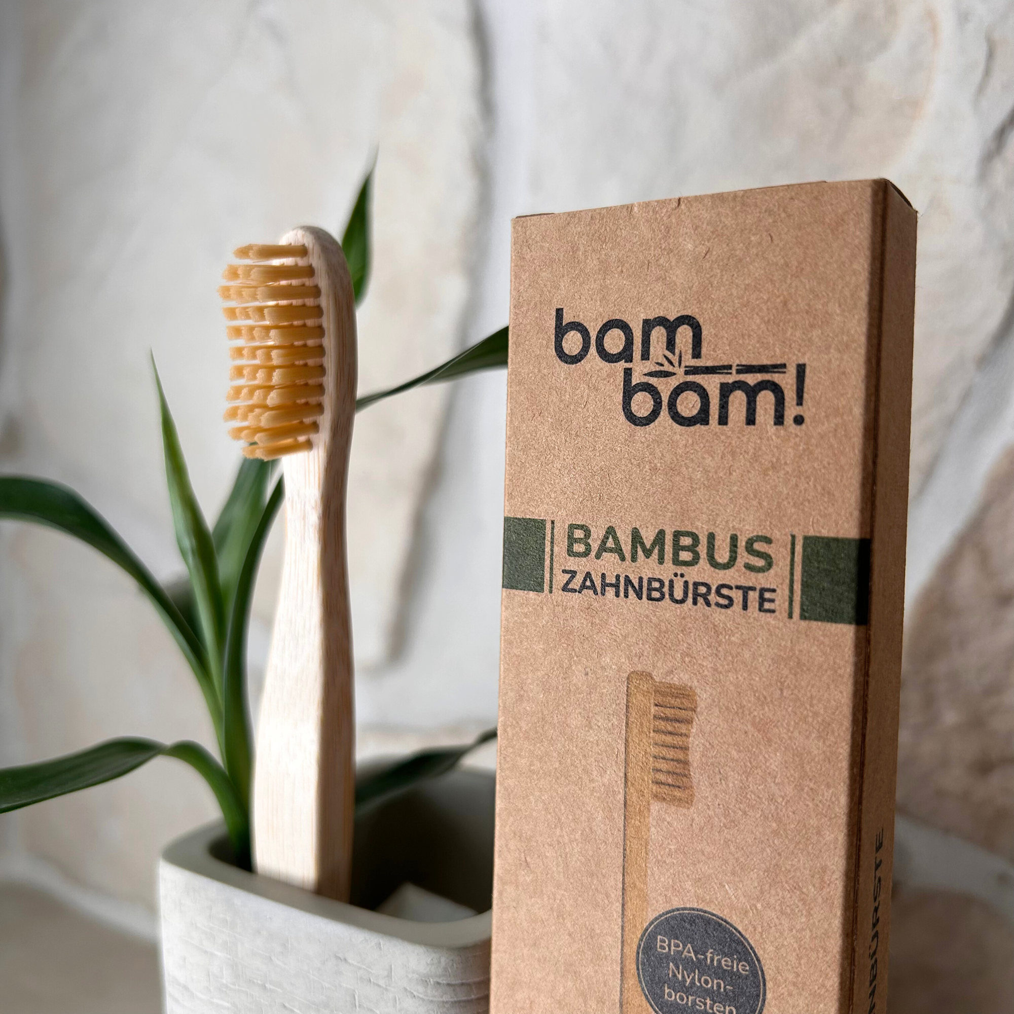 Nicht nur der Griff besteht zu 100 % aus umweltschonenden Materialien – auch die einzigartigen Borsten werden aus 65 Prozent biologischem Rizinusöl gefertigt. Unsere BamBam! Zahnbürste ist komplett BPA frei, vegan und wird unter fairen Bedingungen produziert.